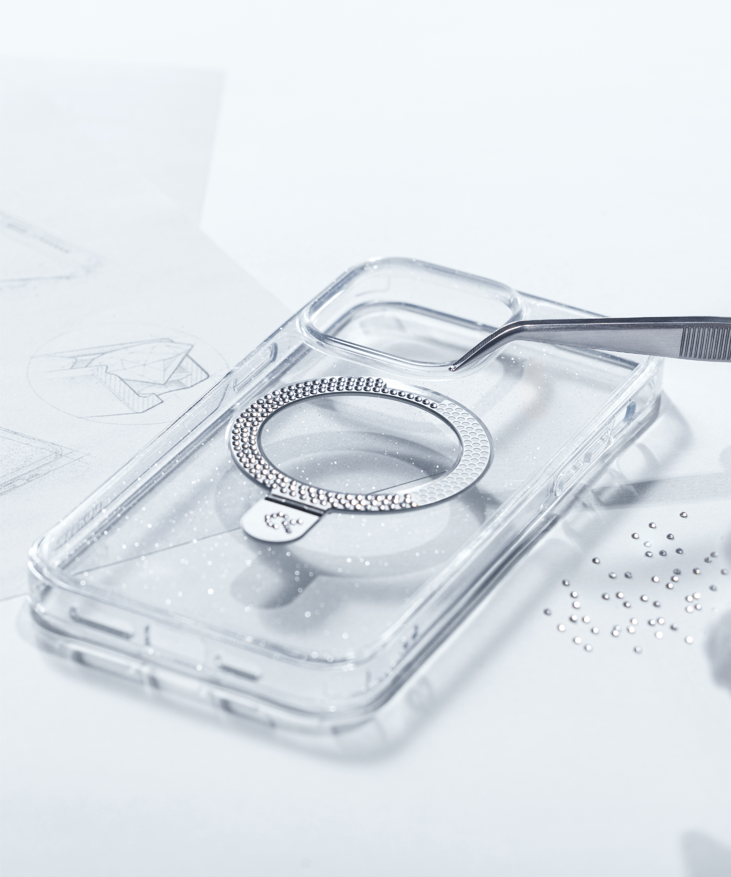 In that vexing moment, inspiration struck like a bolt of lightning! He quickly sketched the prototype of a ring phone case on a napkin.